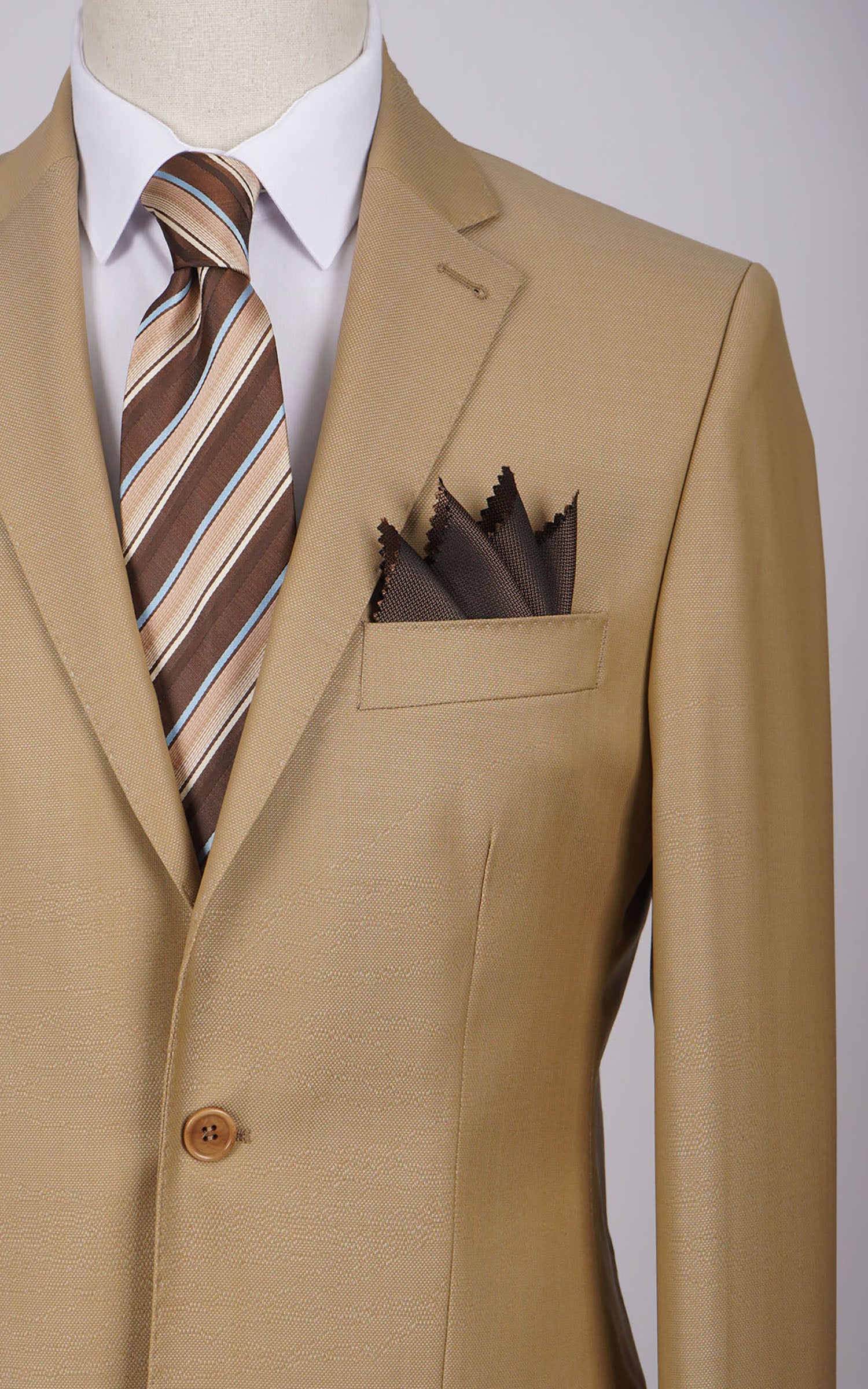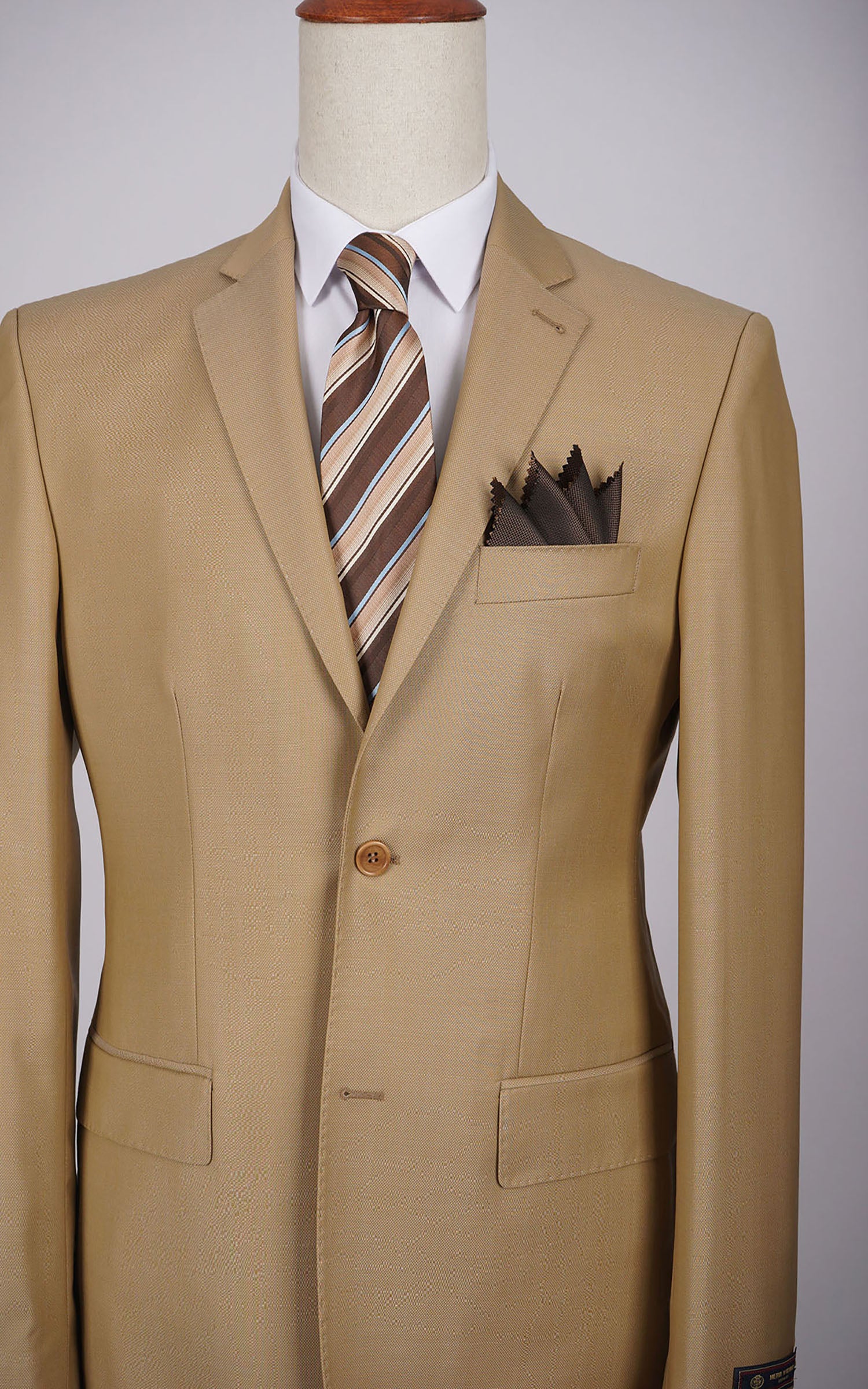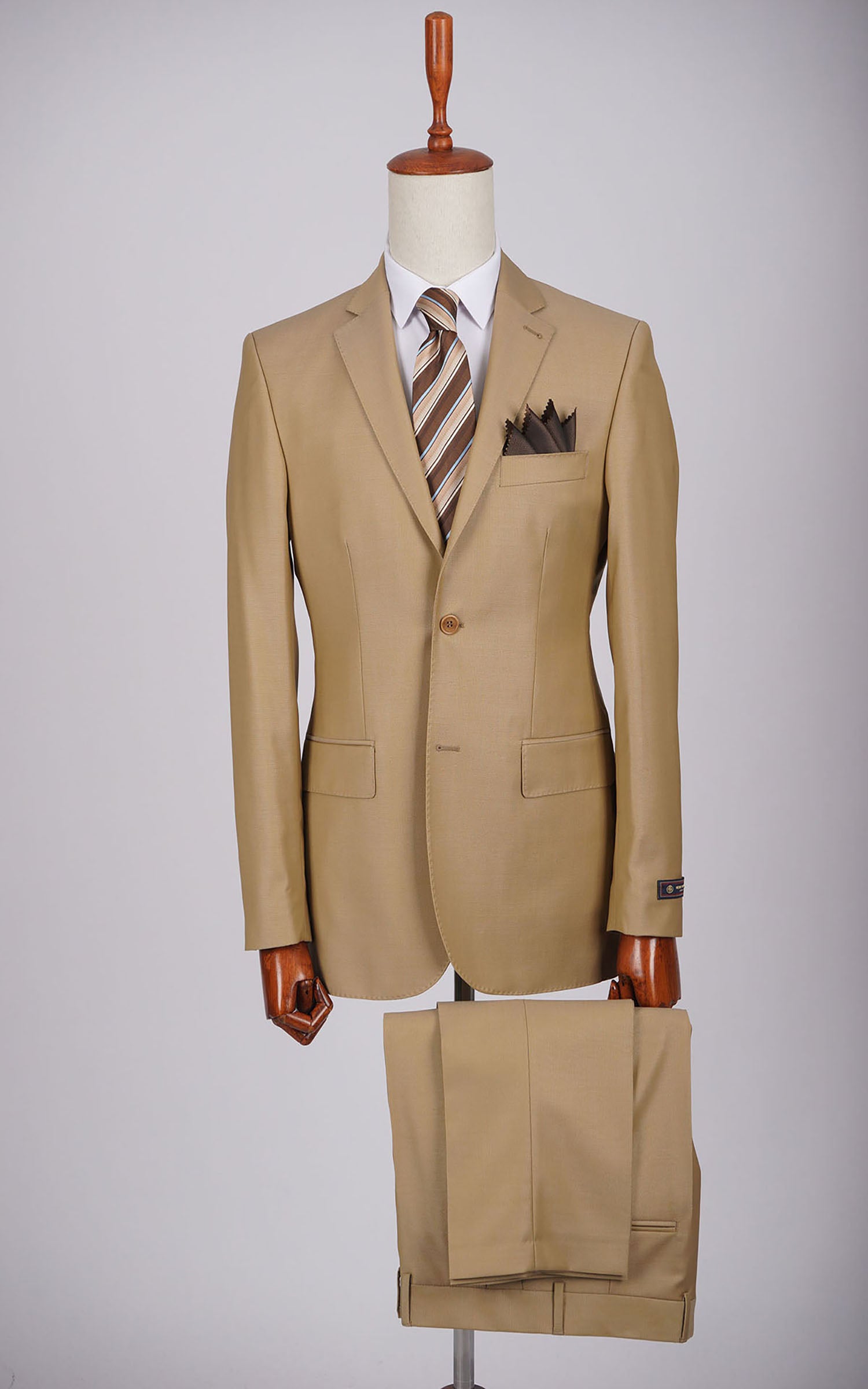 Beige Two Button Plain Wool Suit