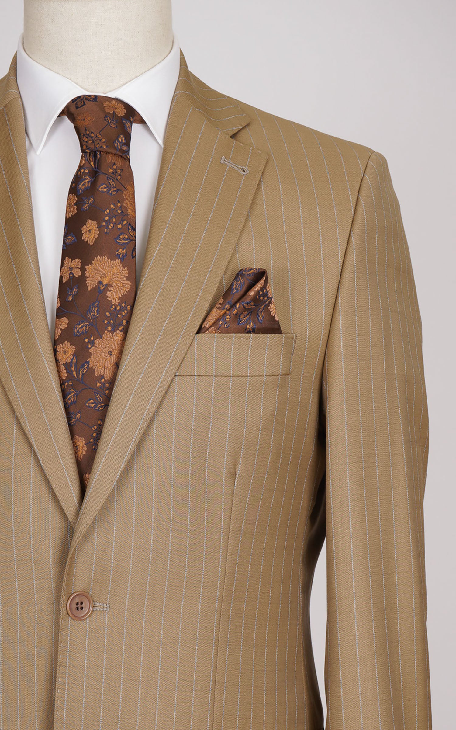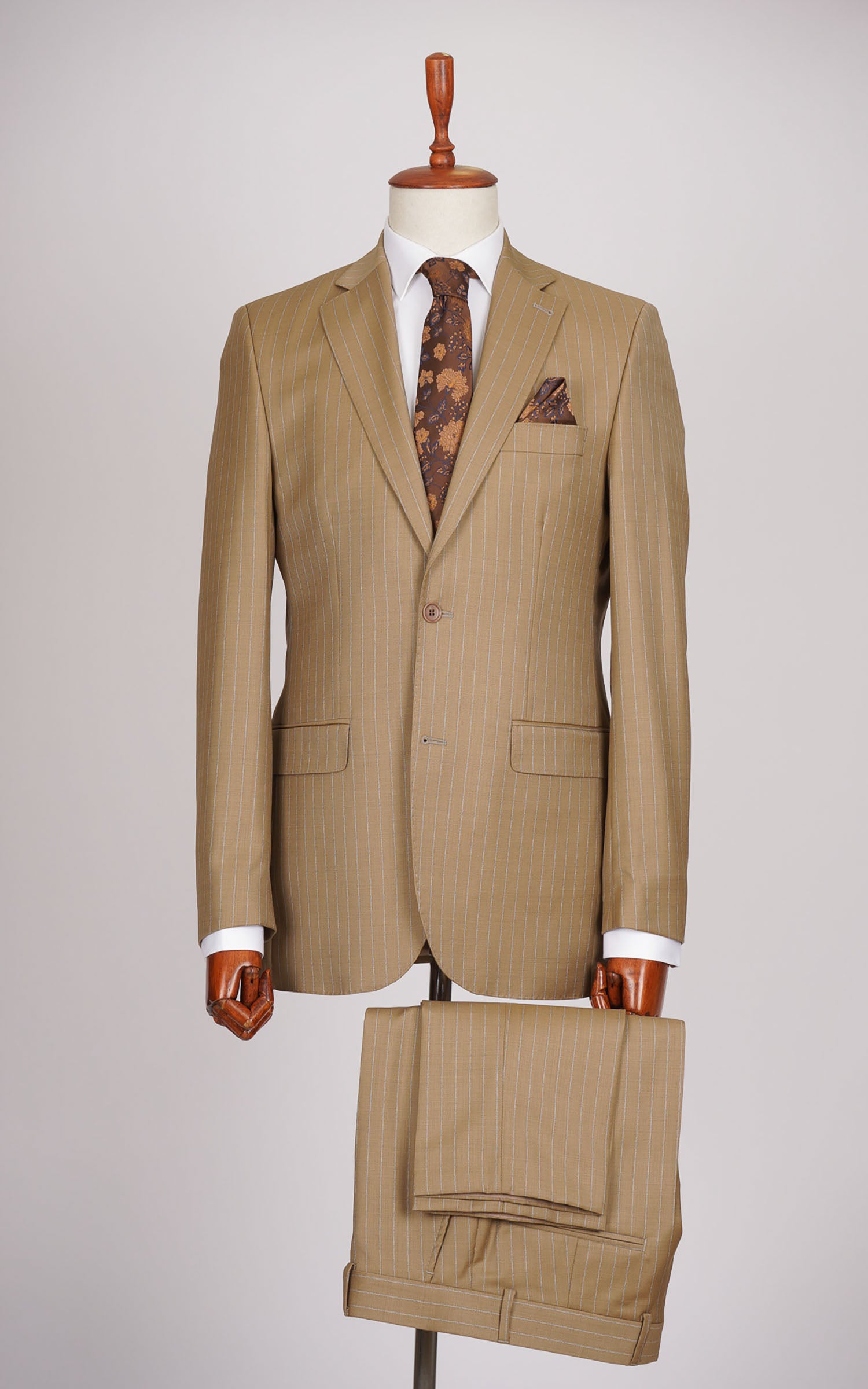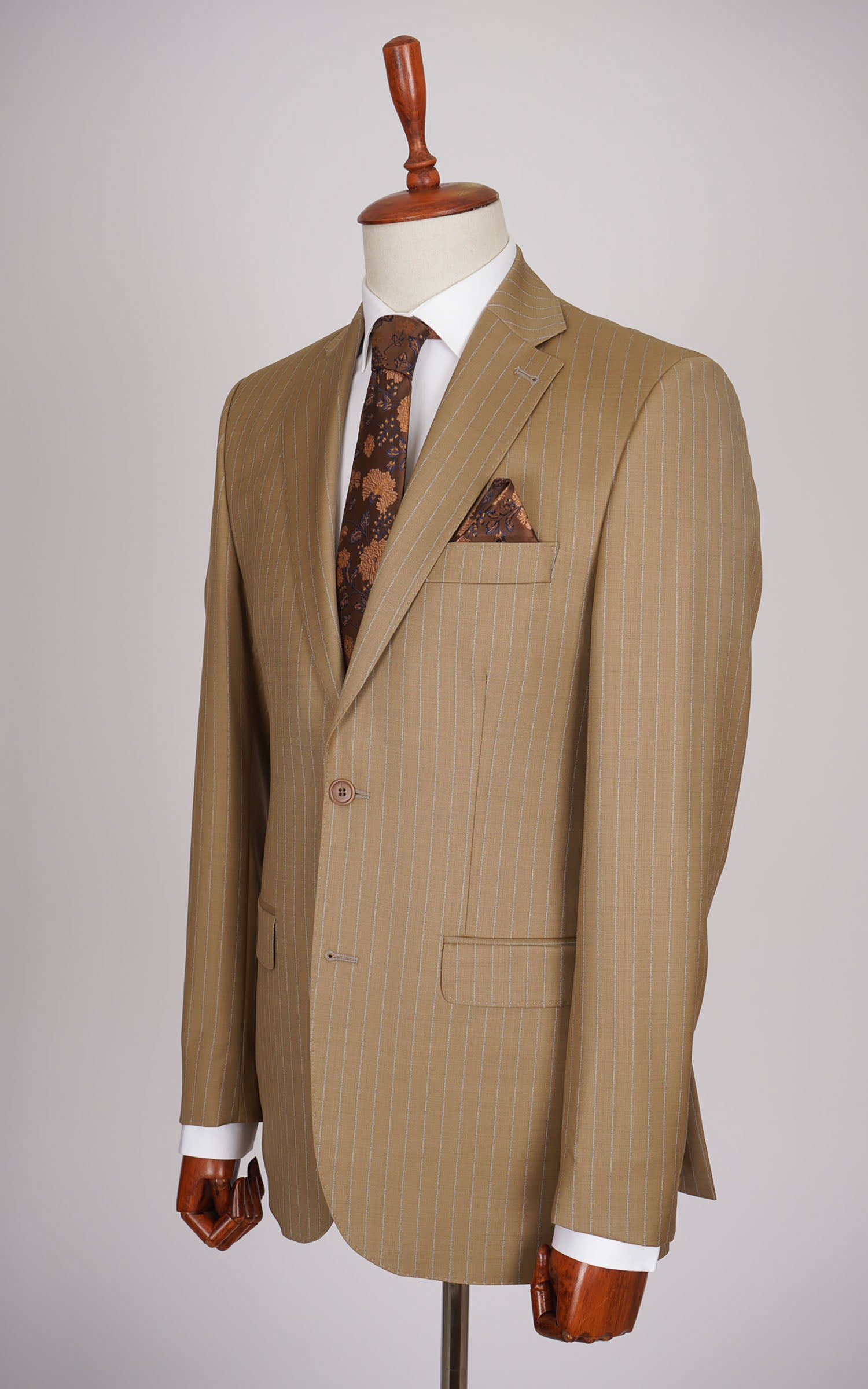 Beige Two Button Stripe Wool Suit