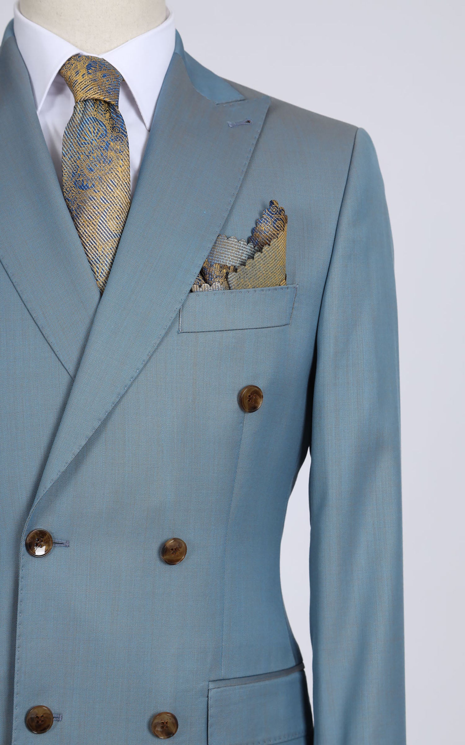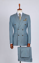Blue Double Breasted Wool Suit