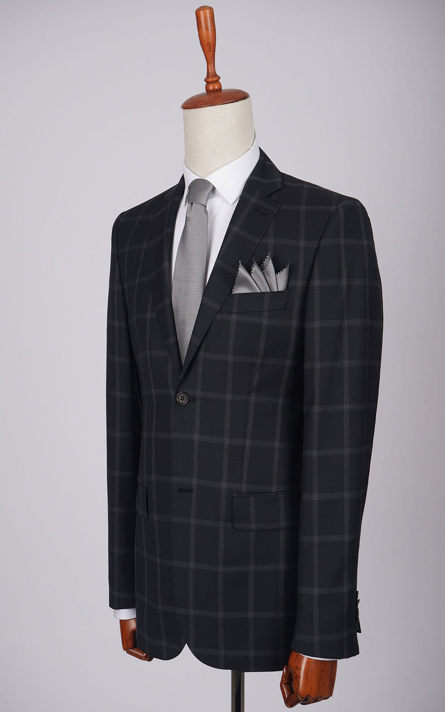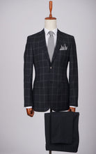 Dark Navy Two Button Checked Wool Suit