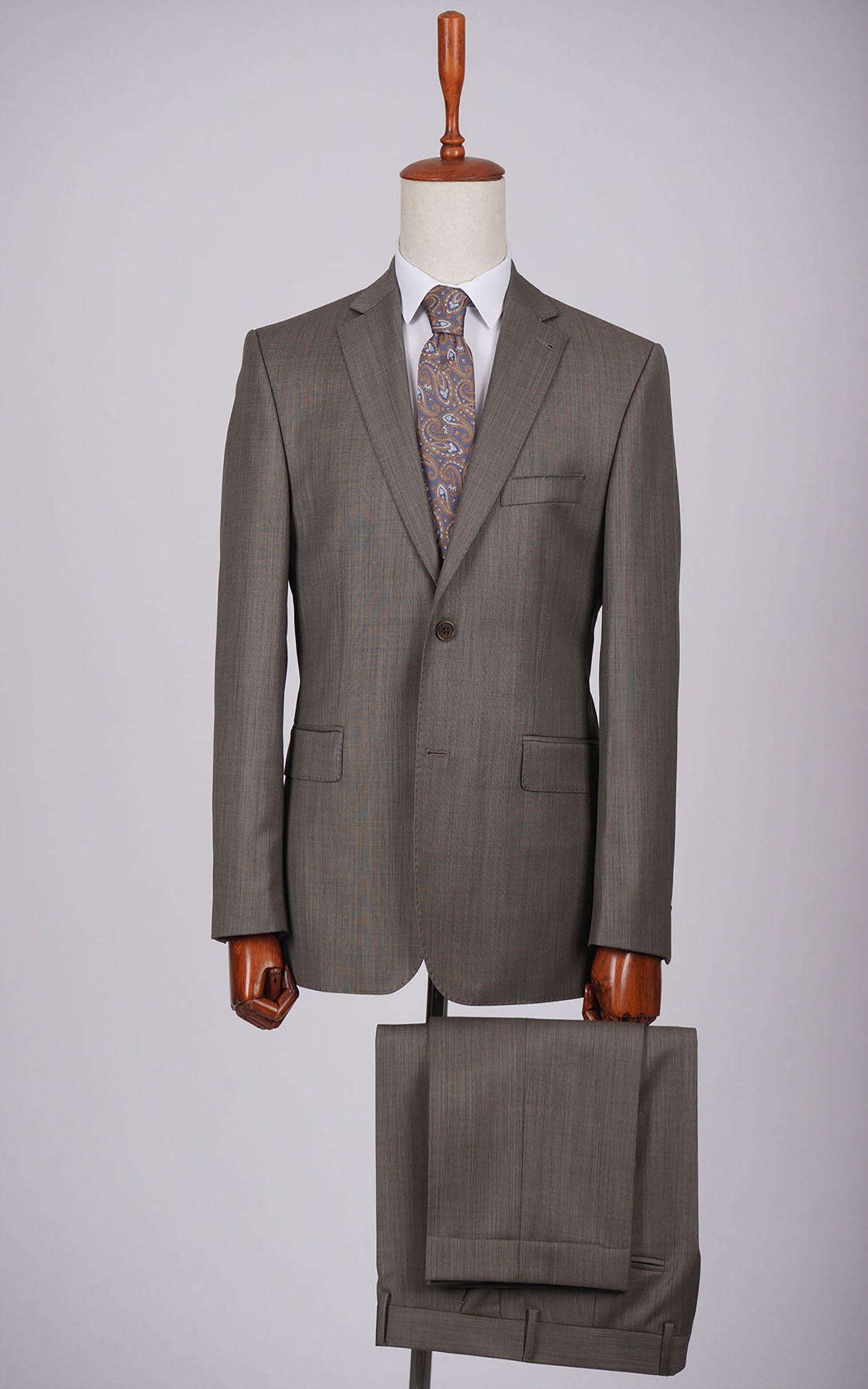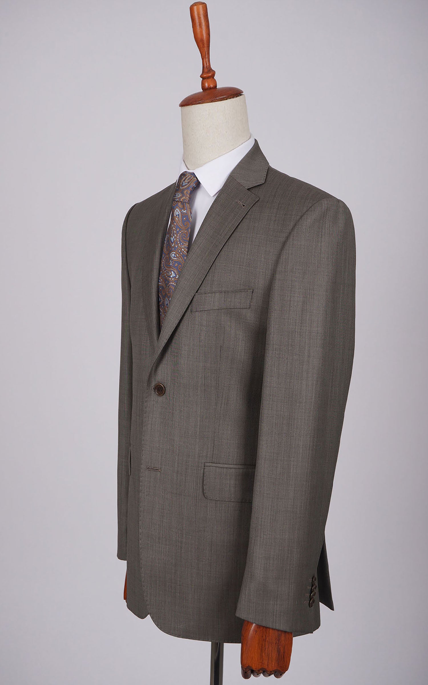 Grey Two Button Plain Wool Suit