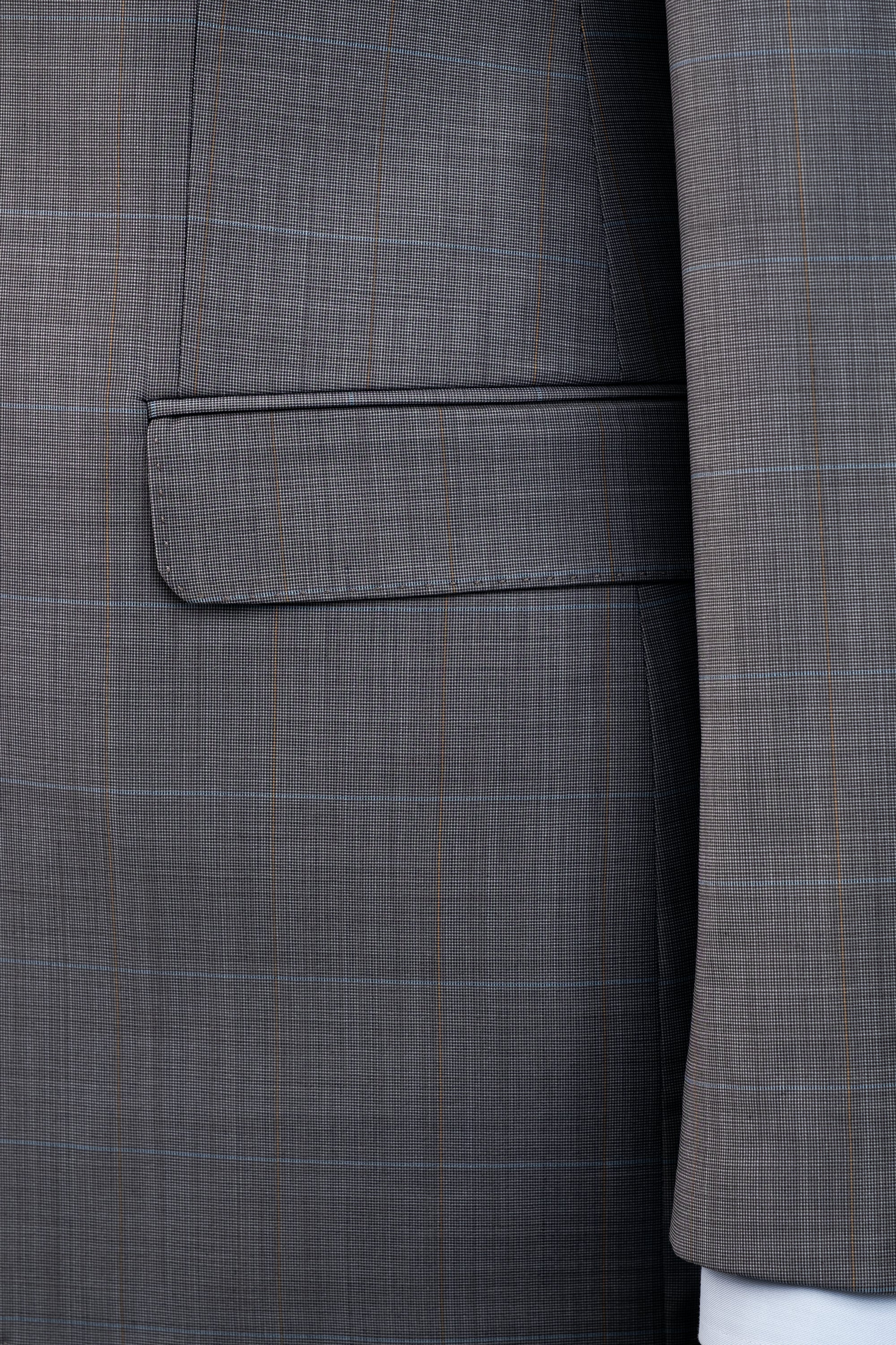 Grey Two Button Checked Wool Suit