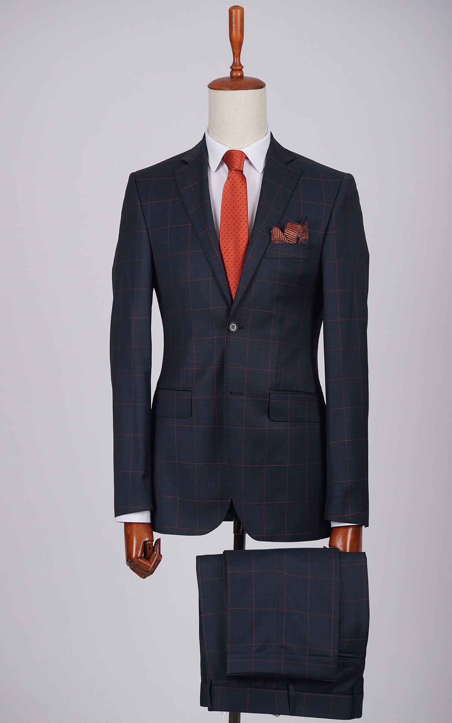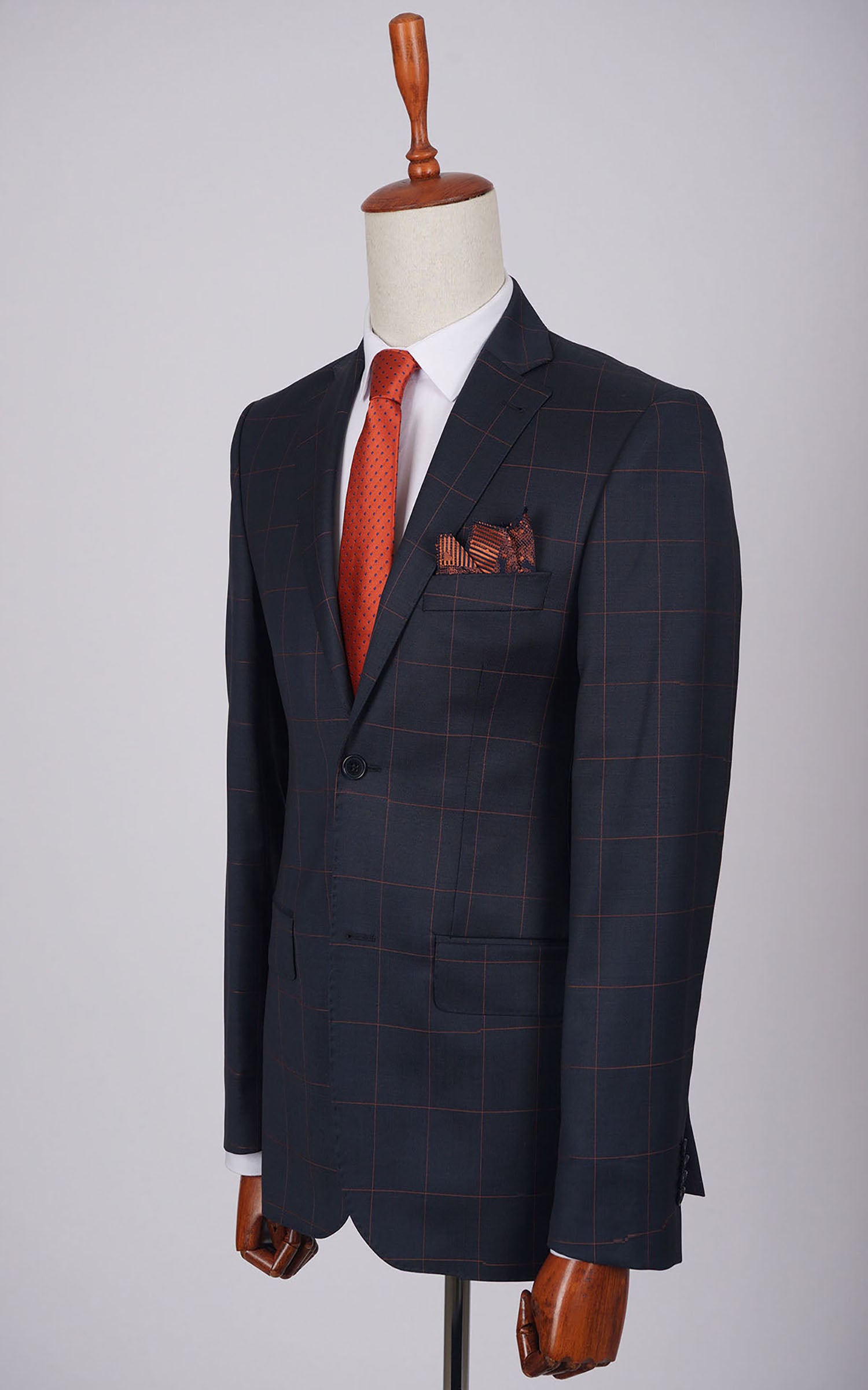 Navy Two Button Checked Wool Suit
