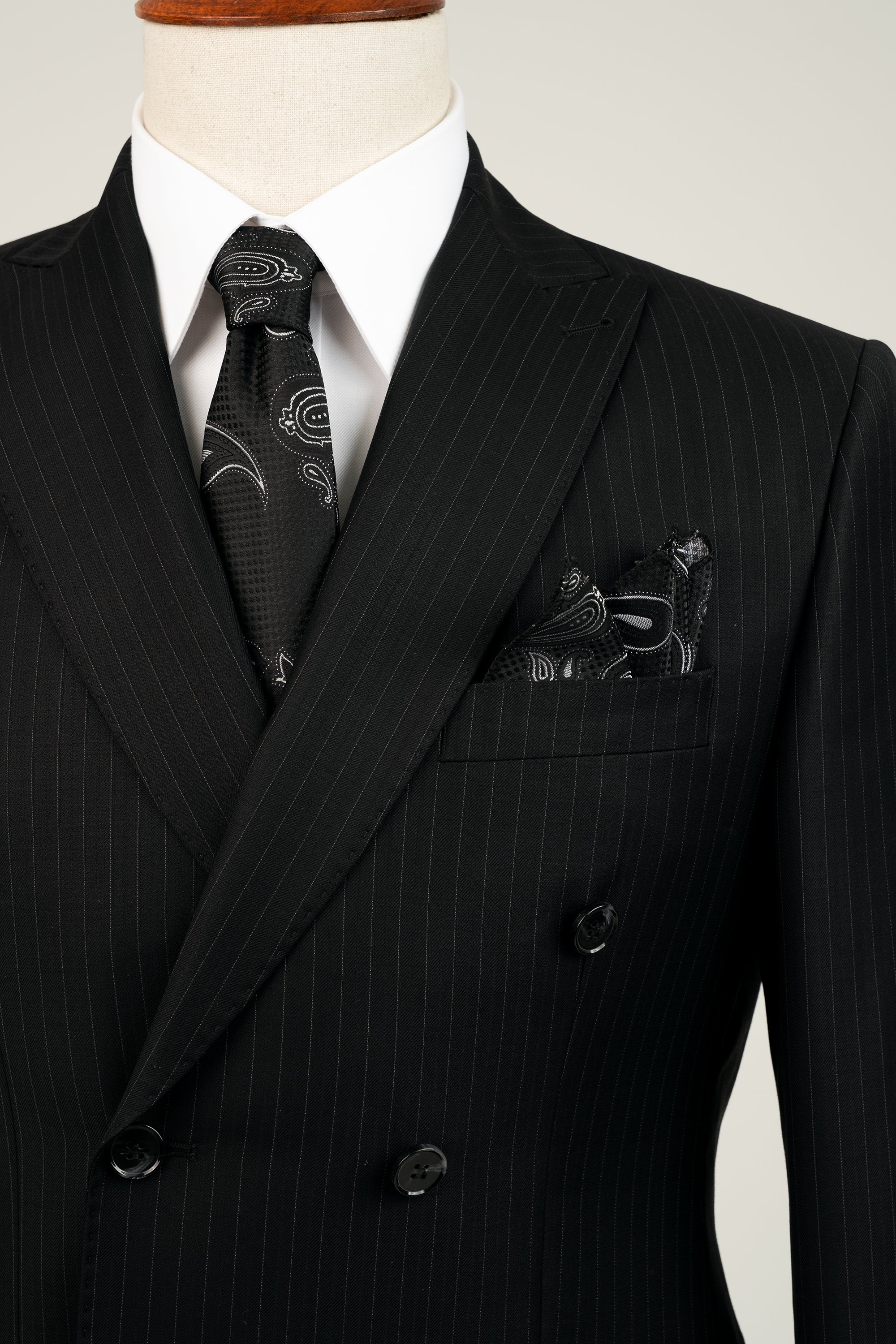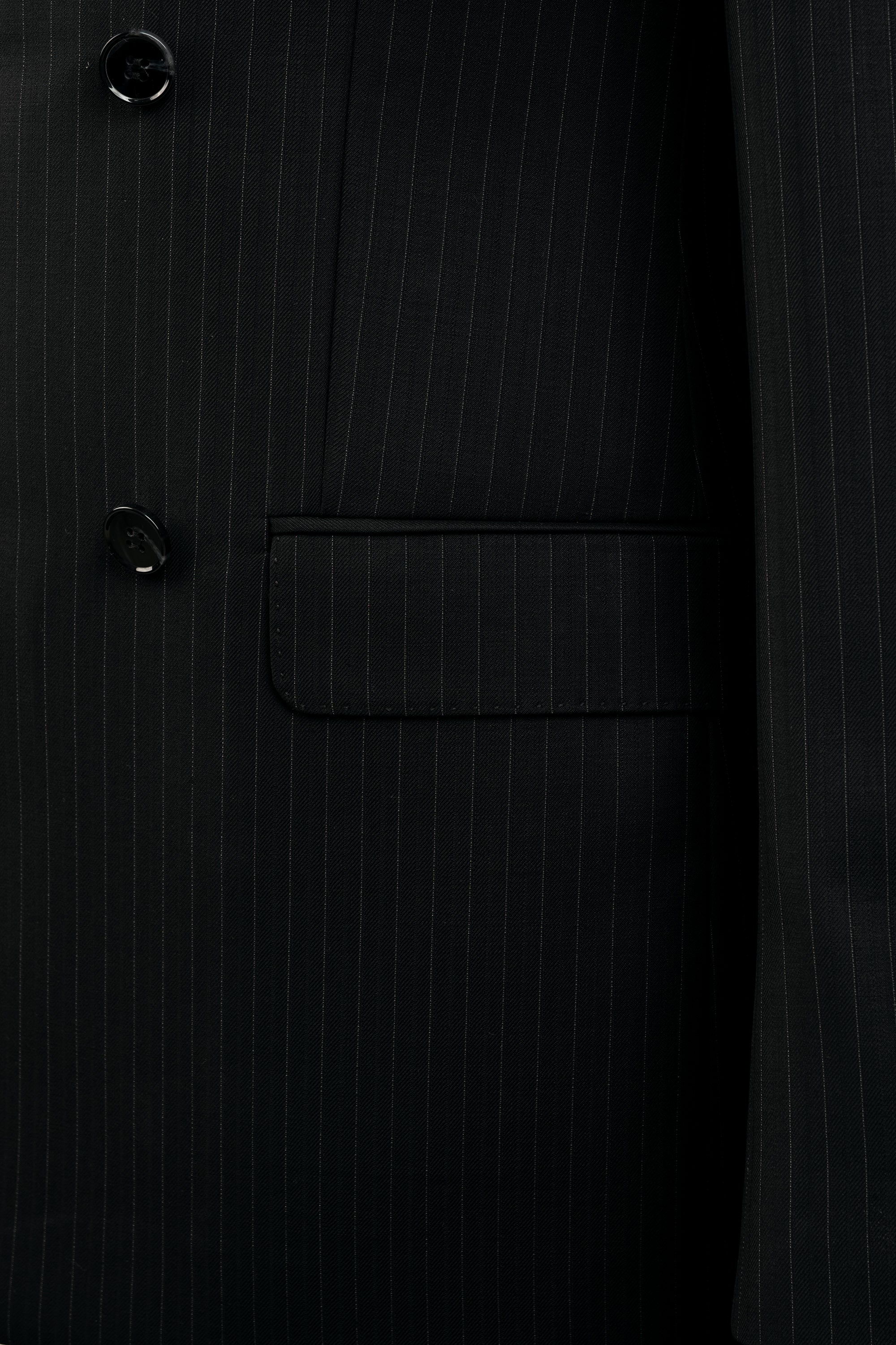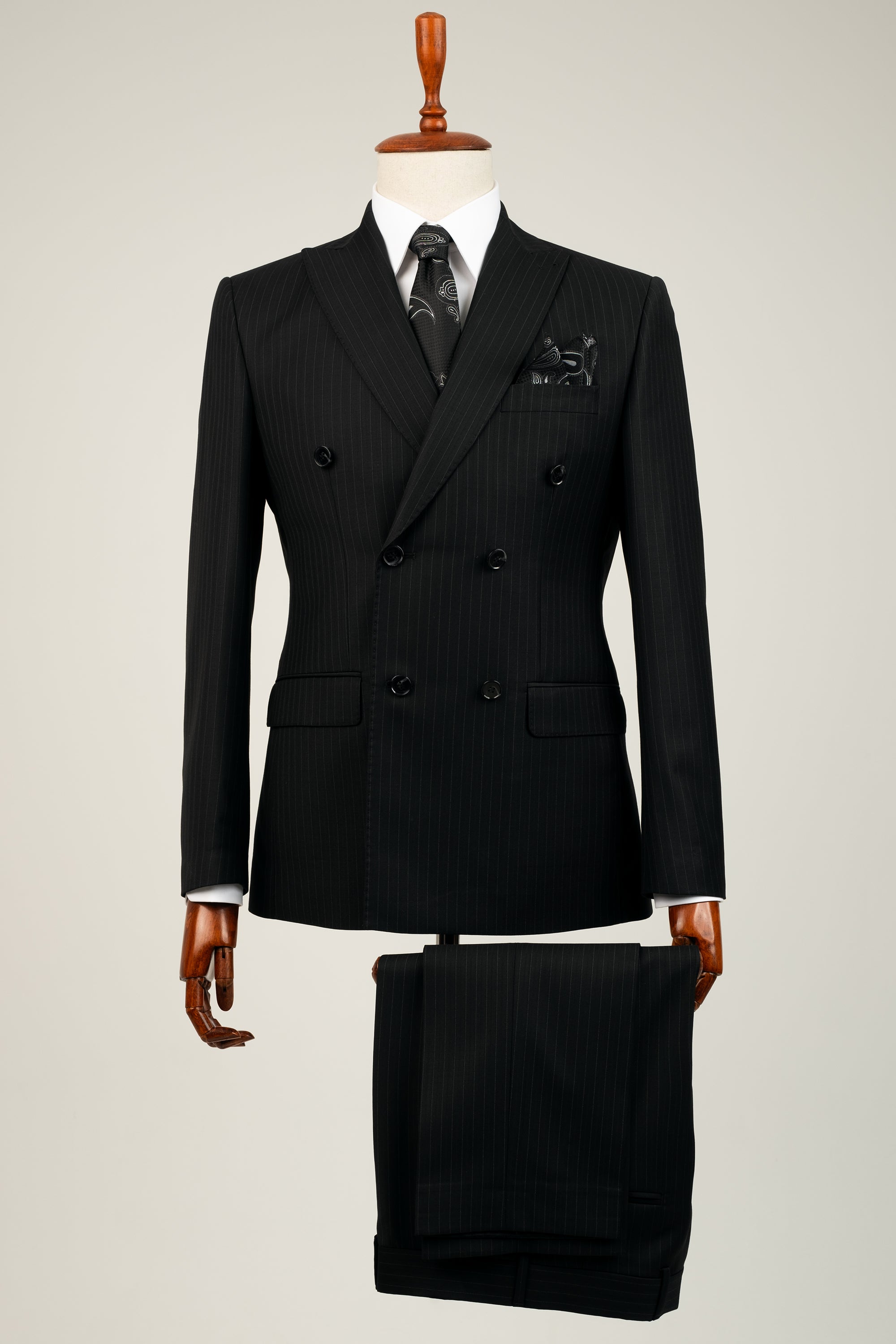 Black Double Breasted Stripe Wool Suit