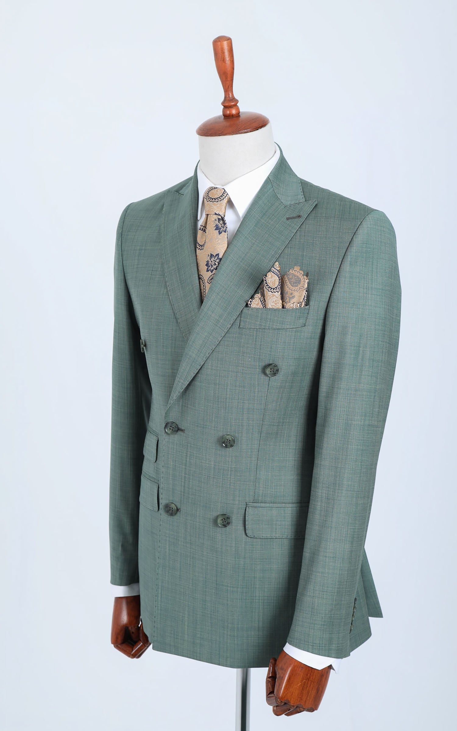 Green Double Breasted Wool Suit