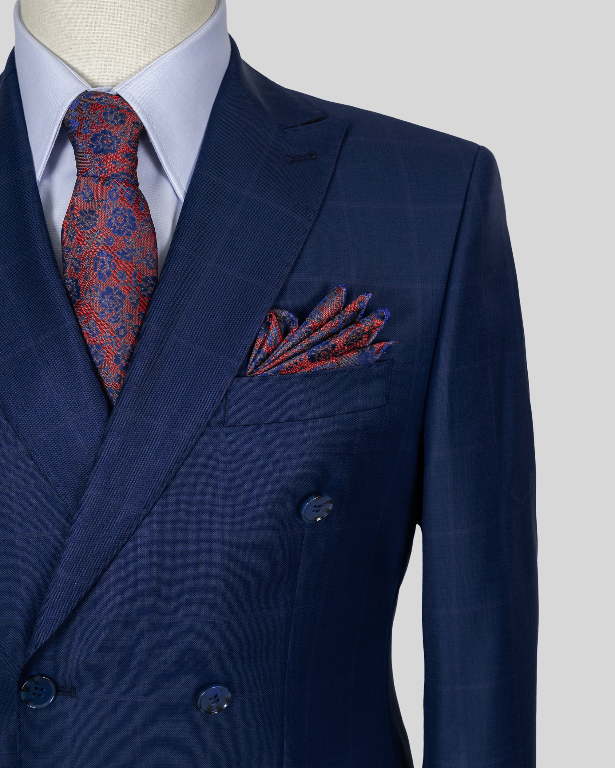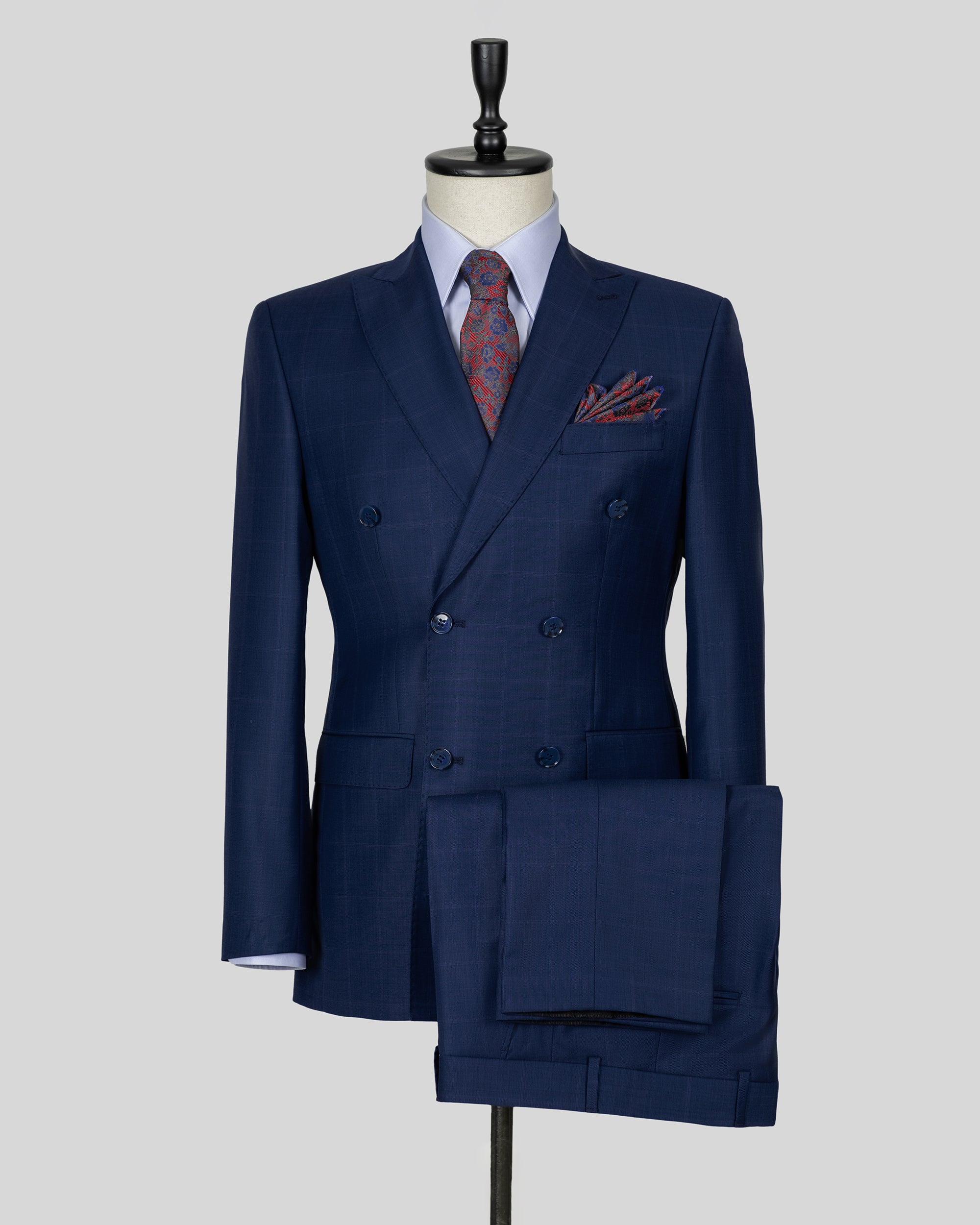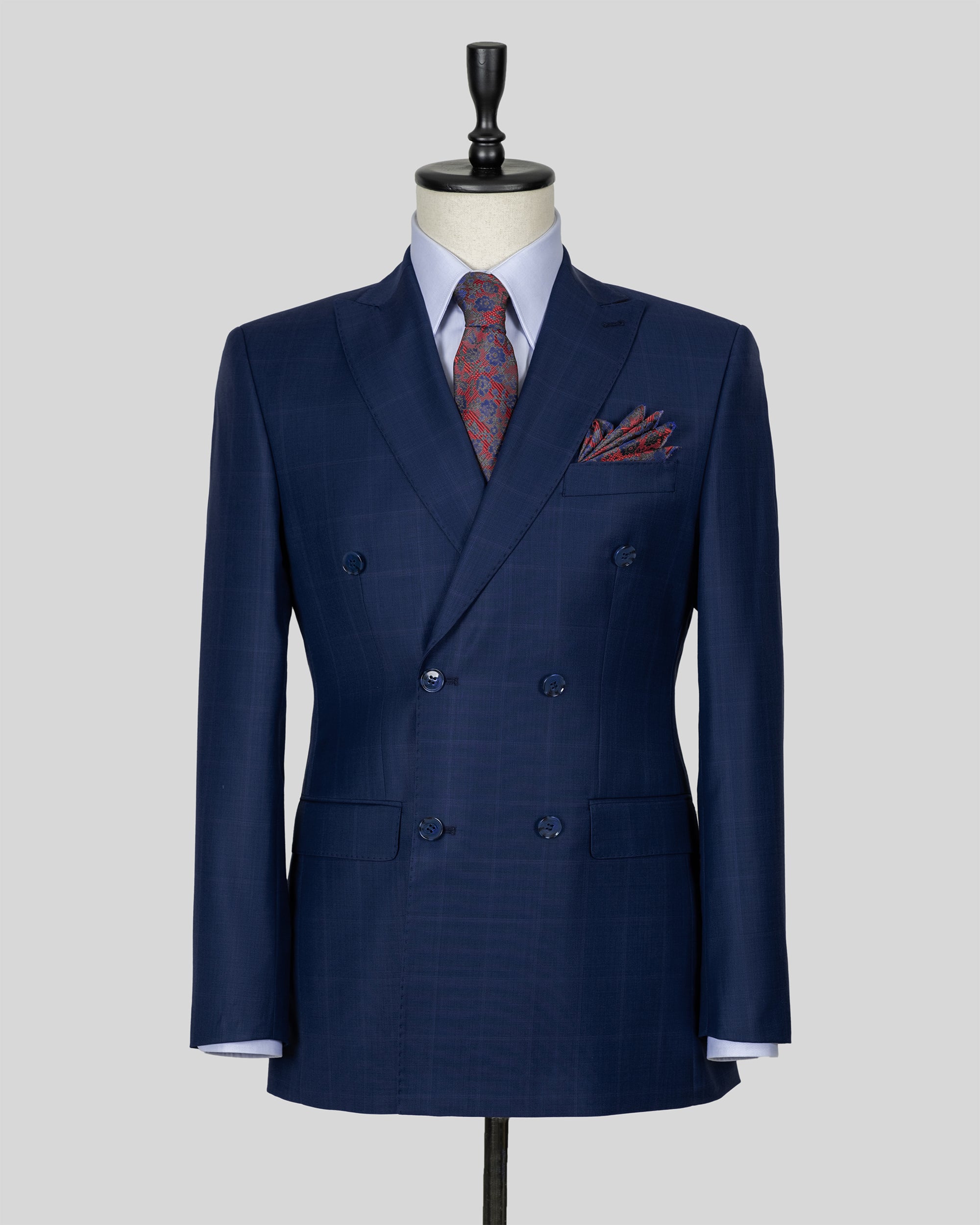 Navy Double Breasted Checked Wool Suit