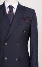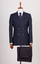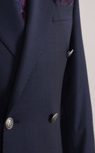 Blue Double Breasted Plain Wool Jacket