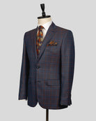 Blue Two Button Checked Wool Jacket