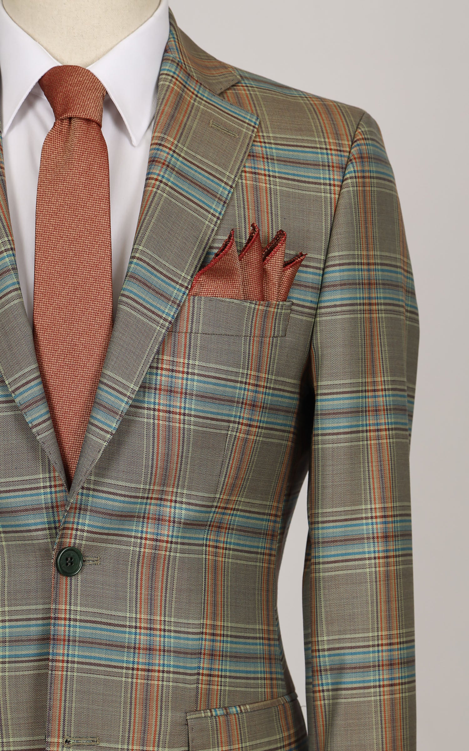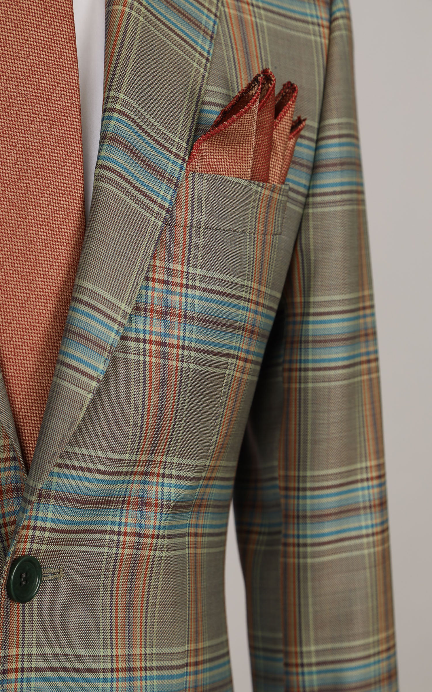 Green Two Button Checked Wool Jacket