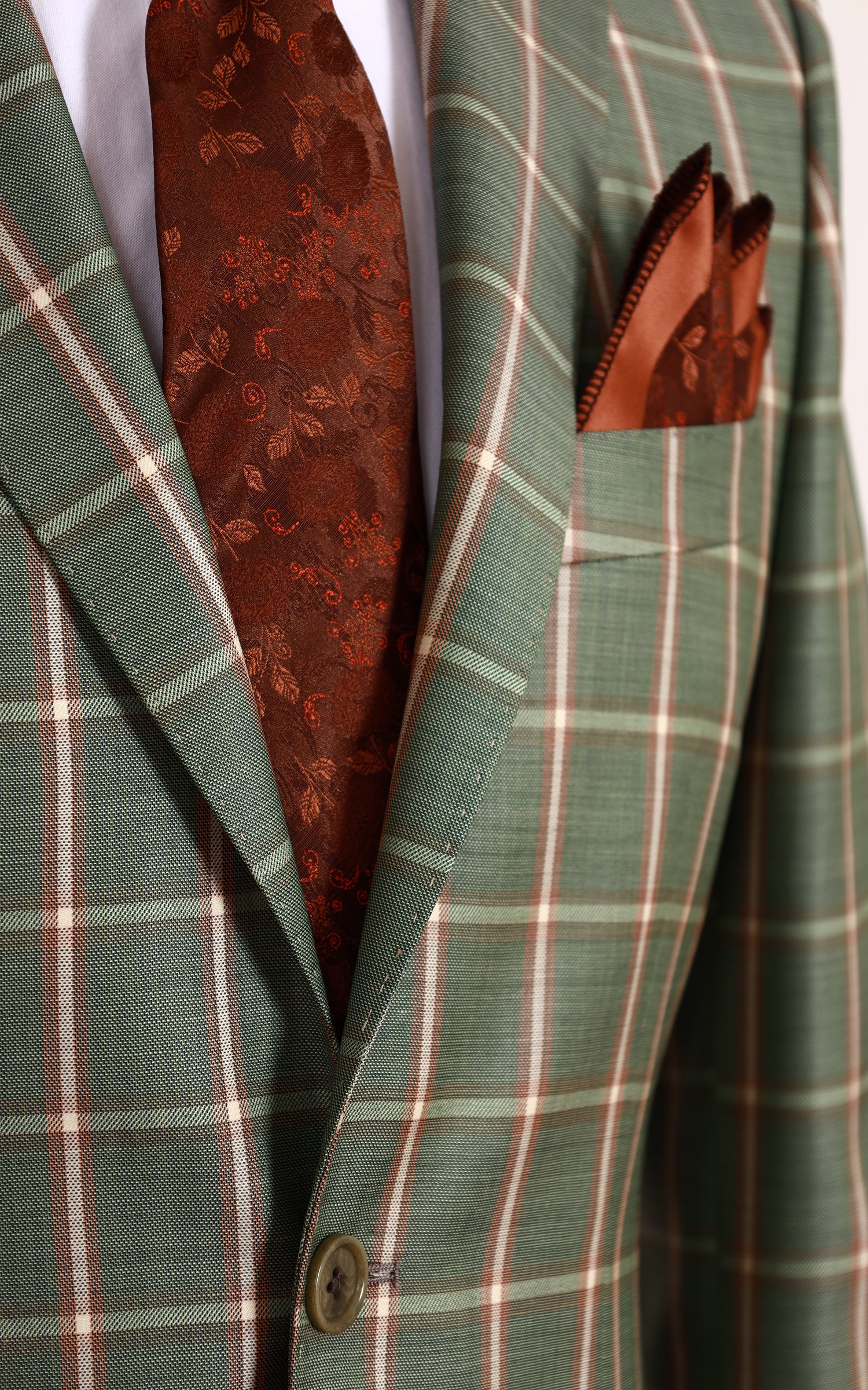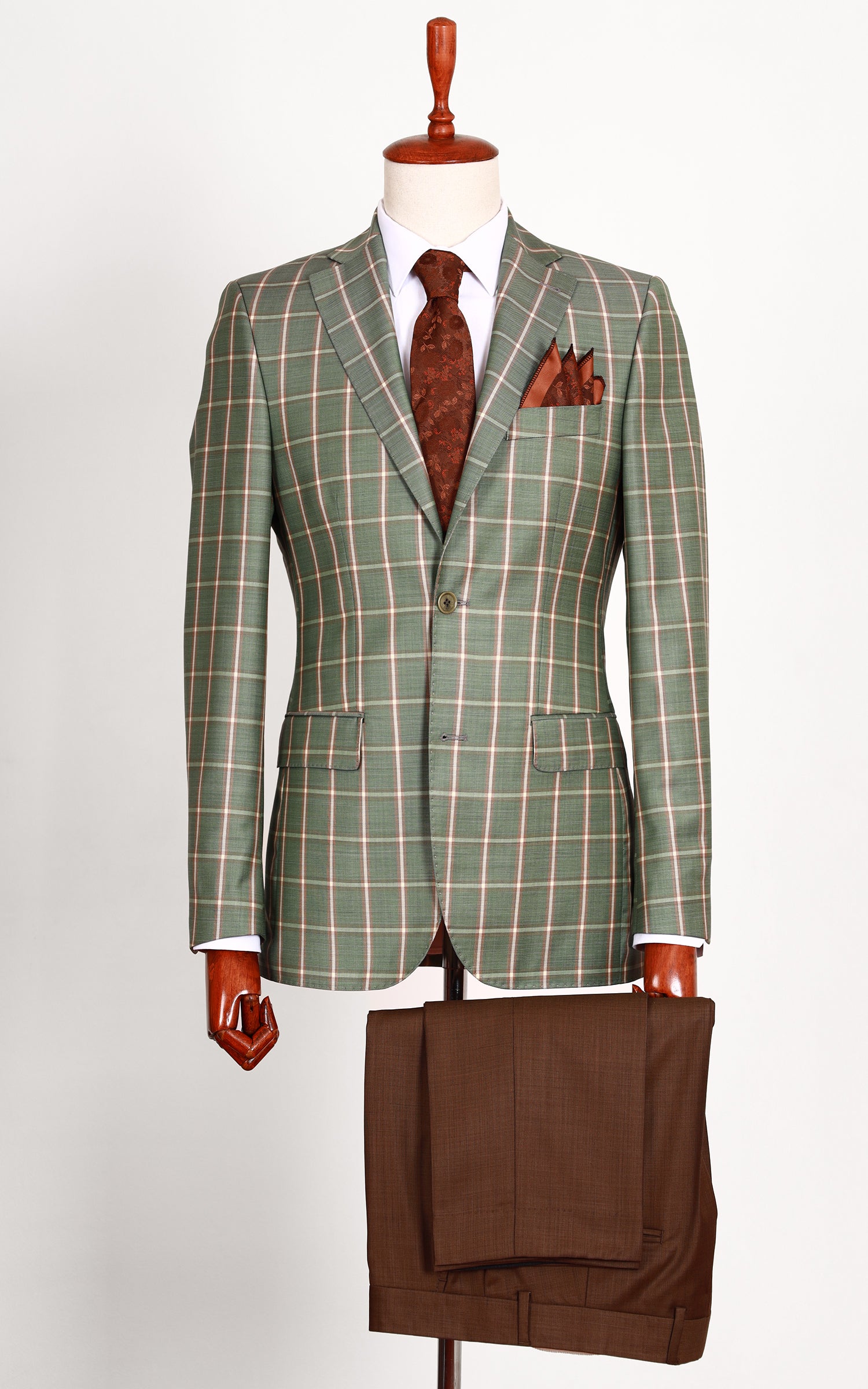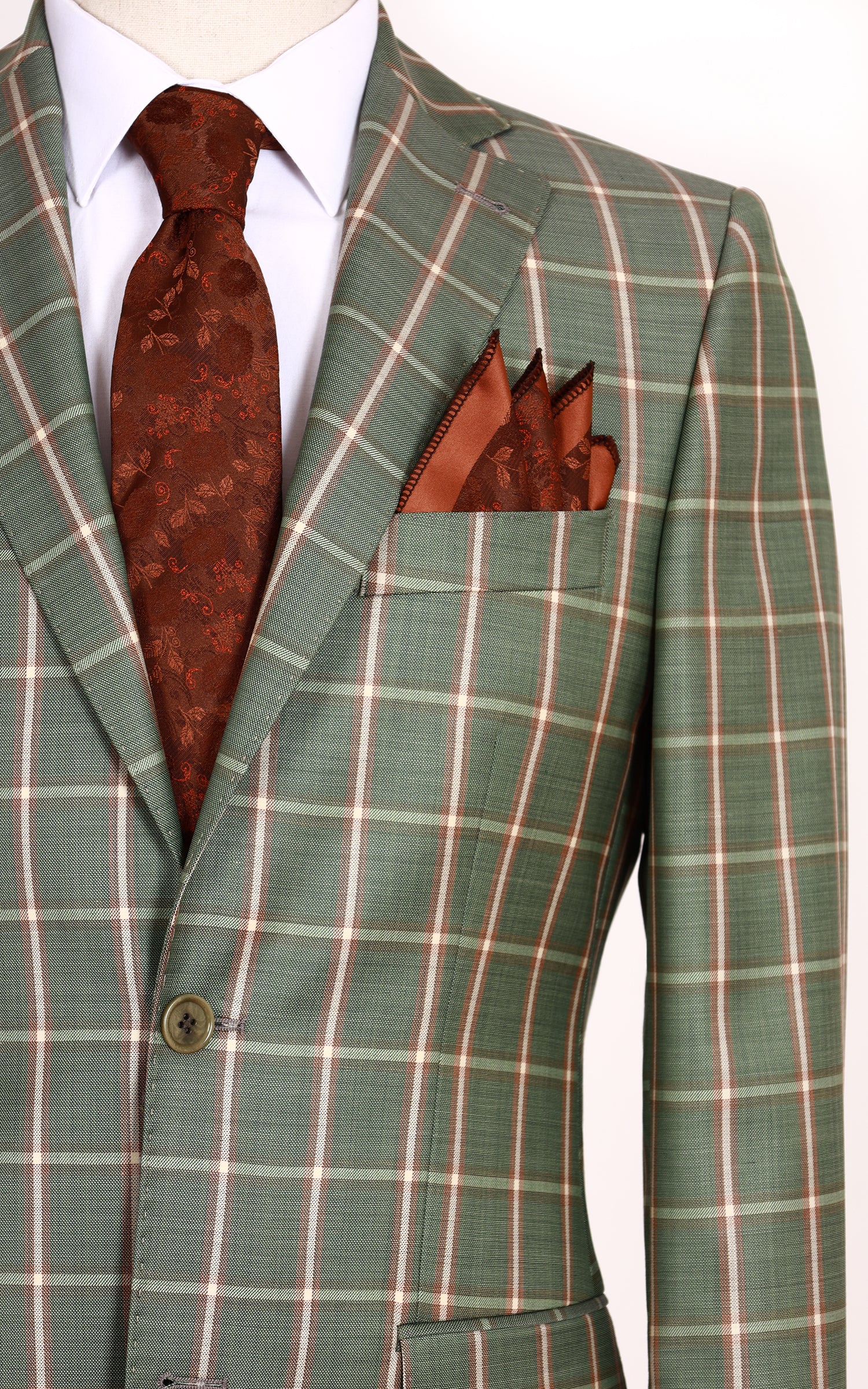 Green Two Button Checked Wool Jacket