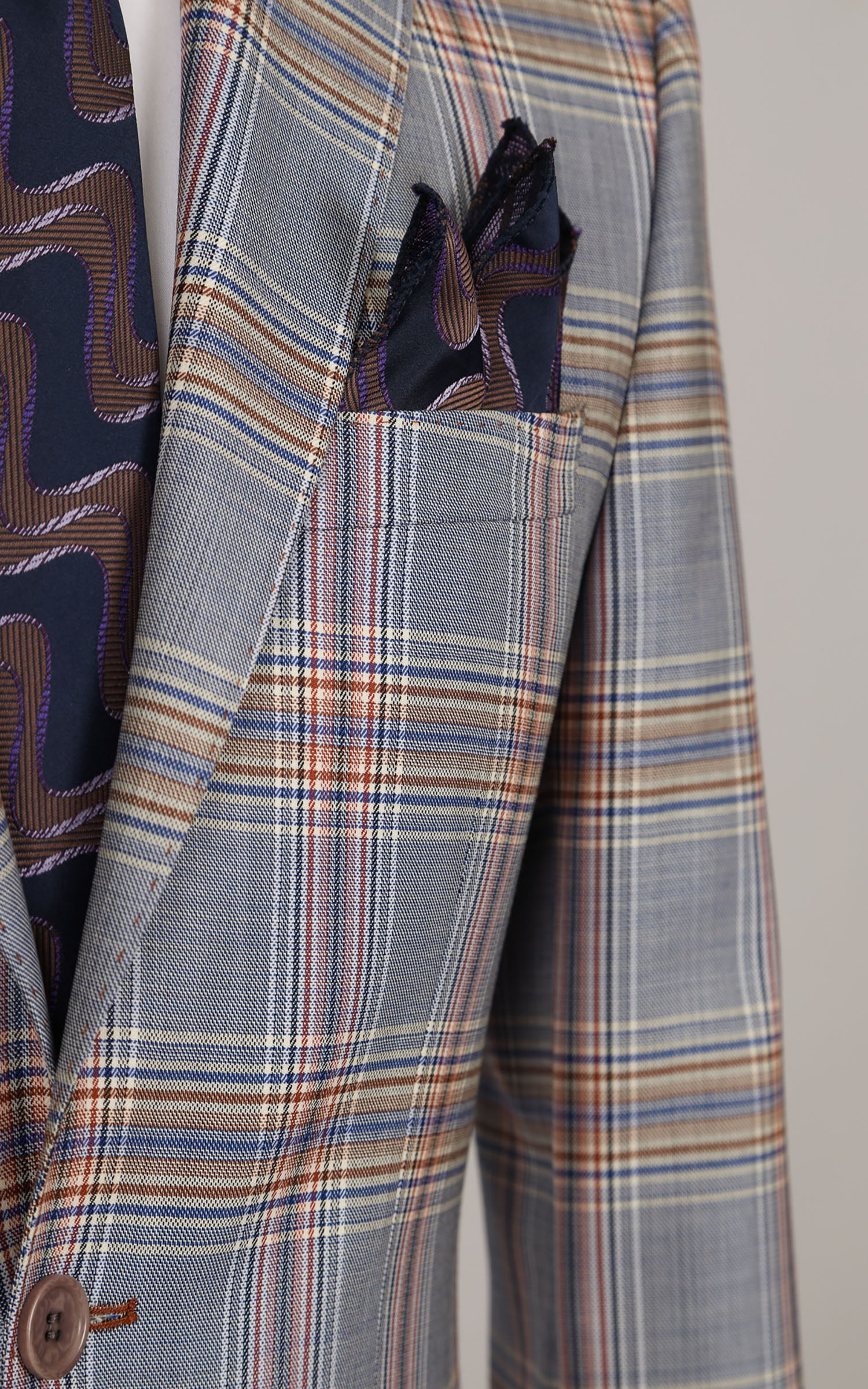 Grey Two Button Checked Wool Jacket