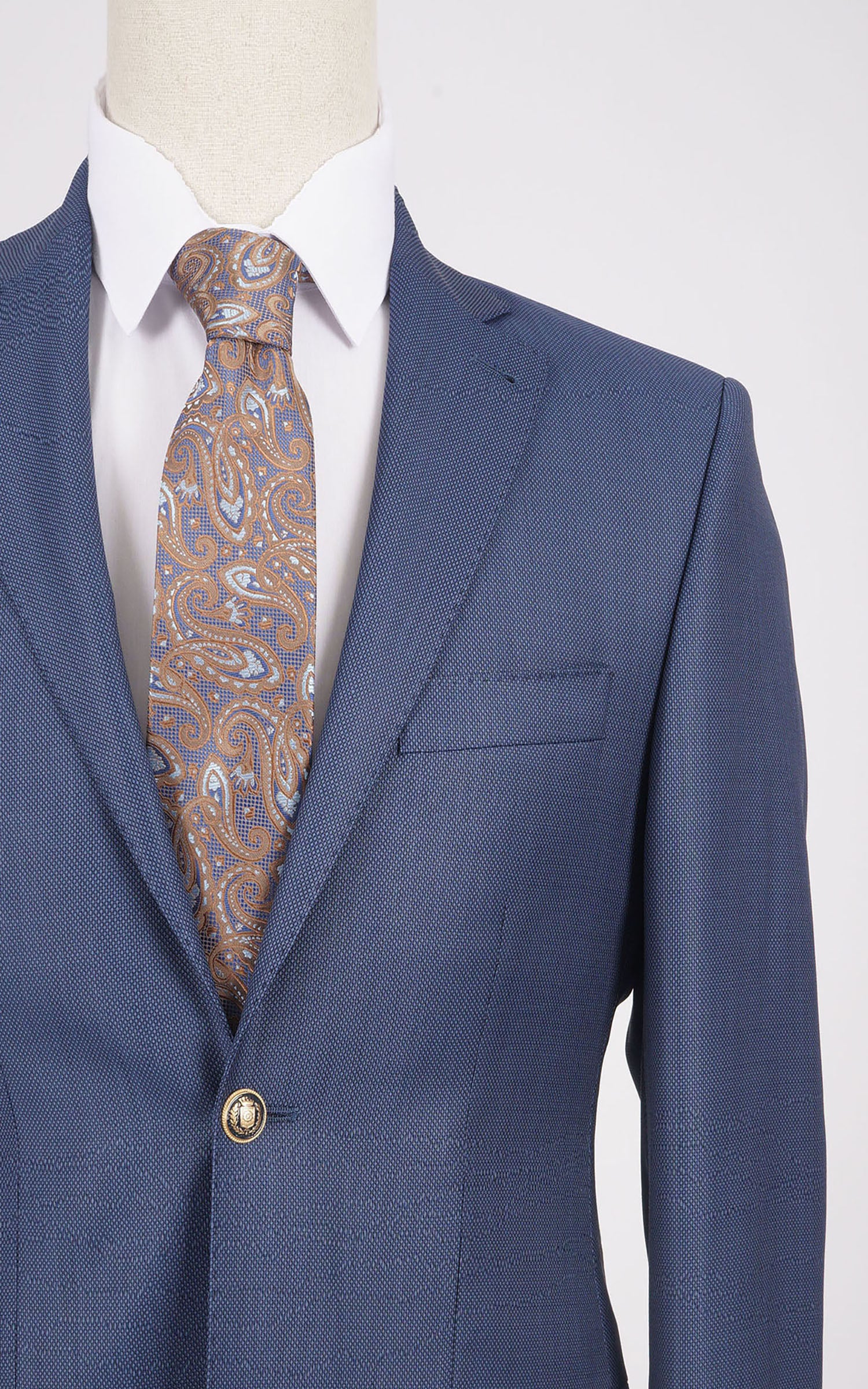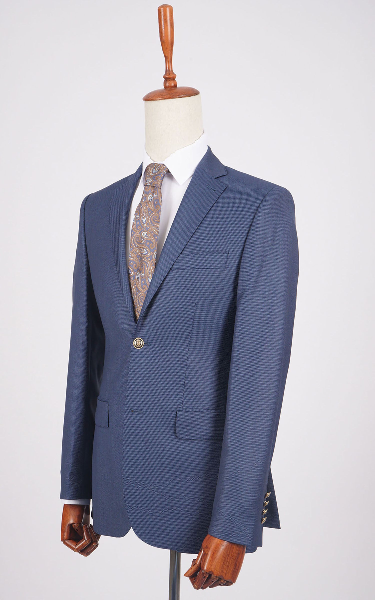Blue Two Button Birdseye Wool Jacket