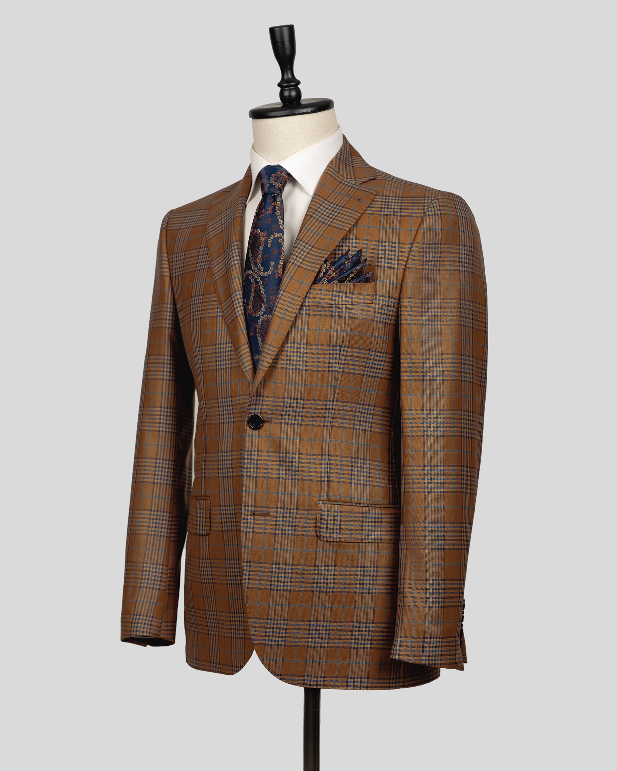 Brown Two Button Checked Wool Jacket