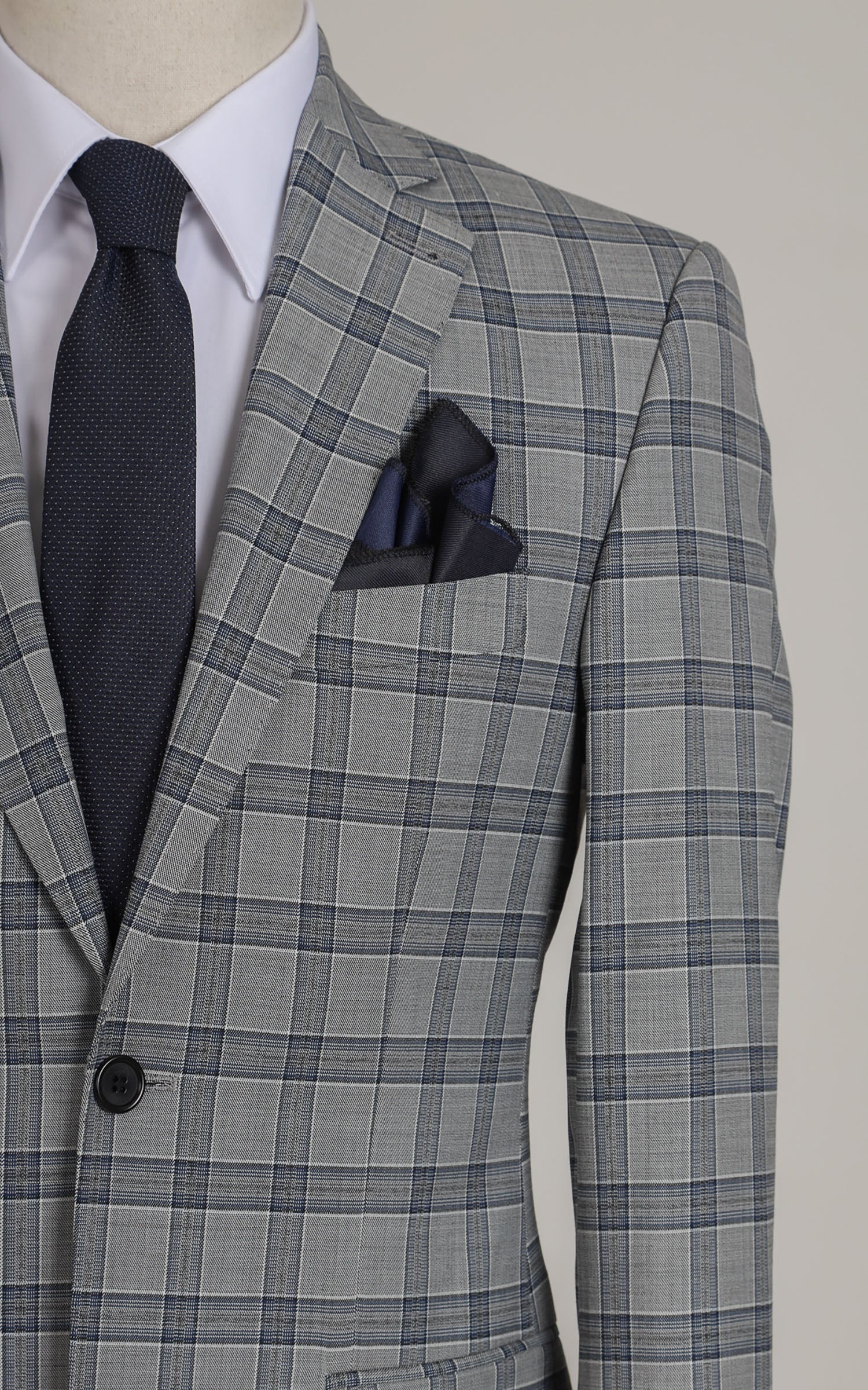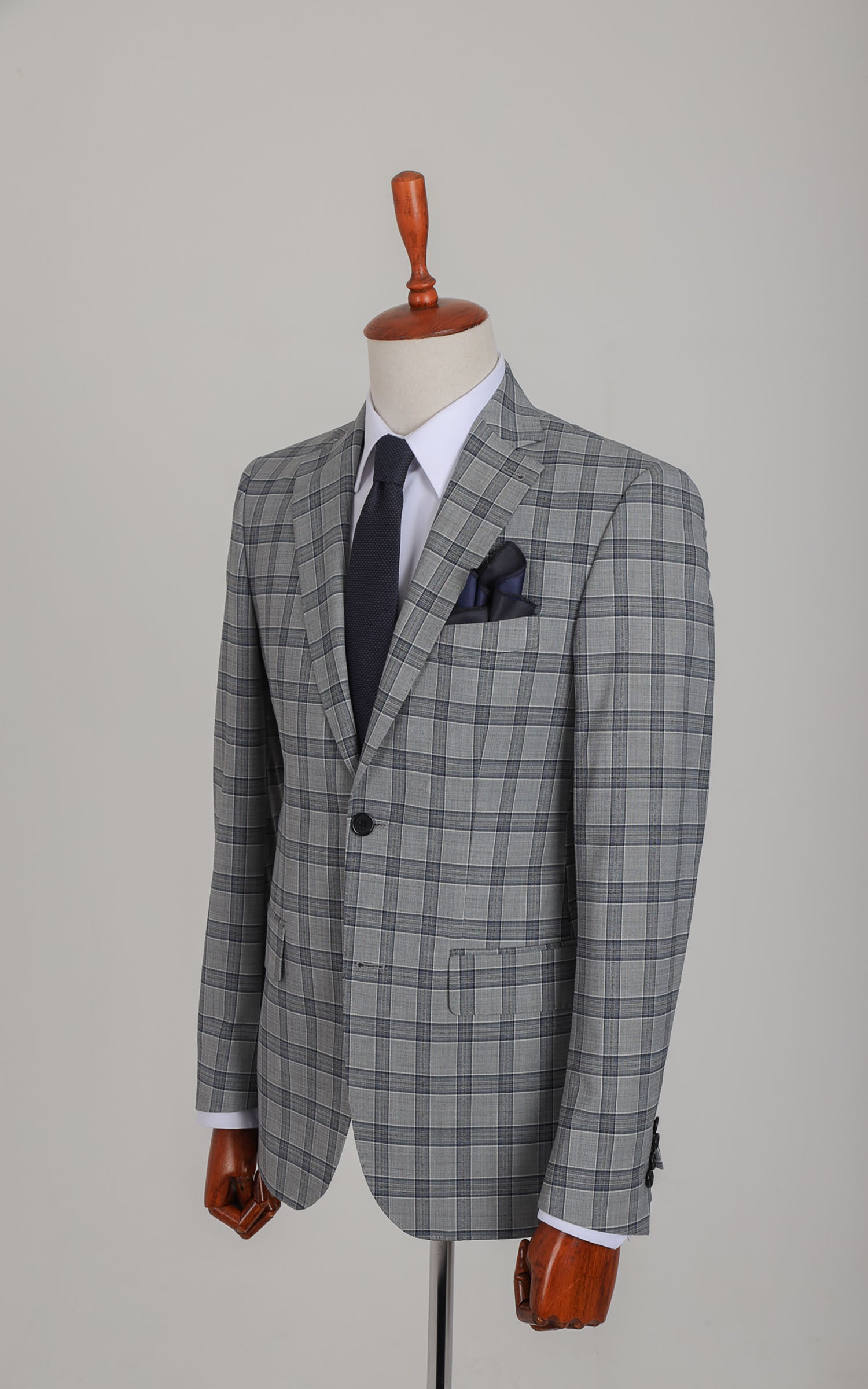 Grey Two Button Checked Wool Jacket