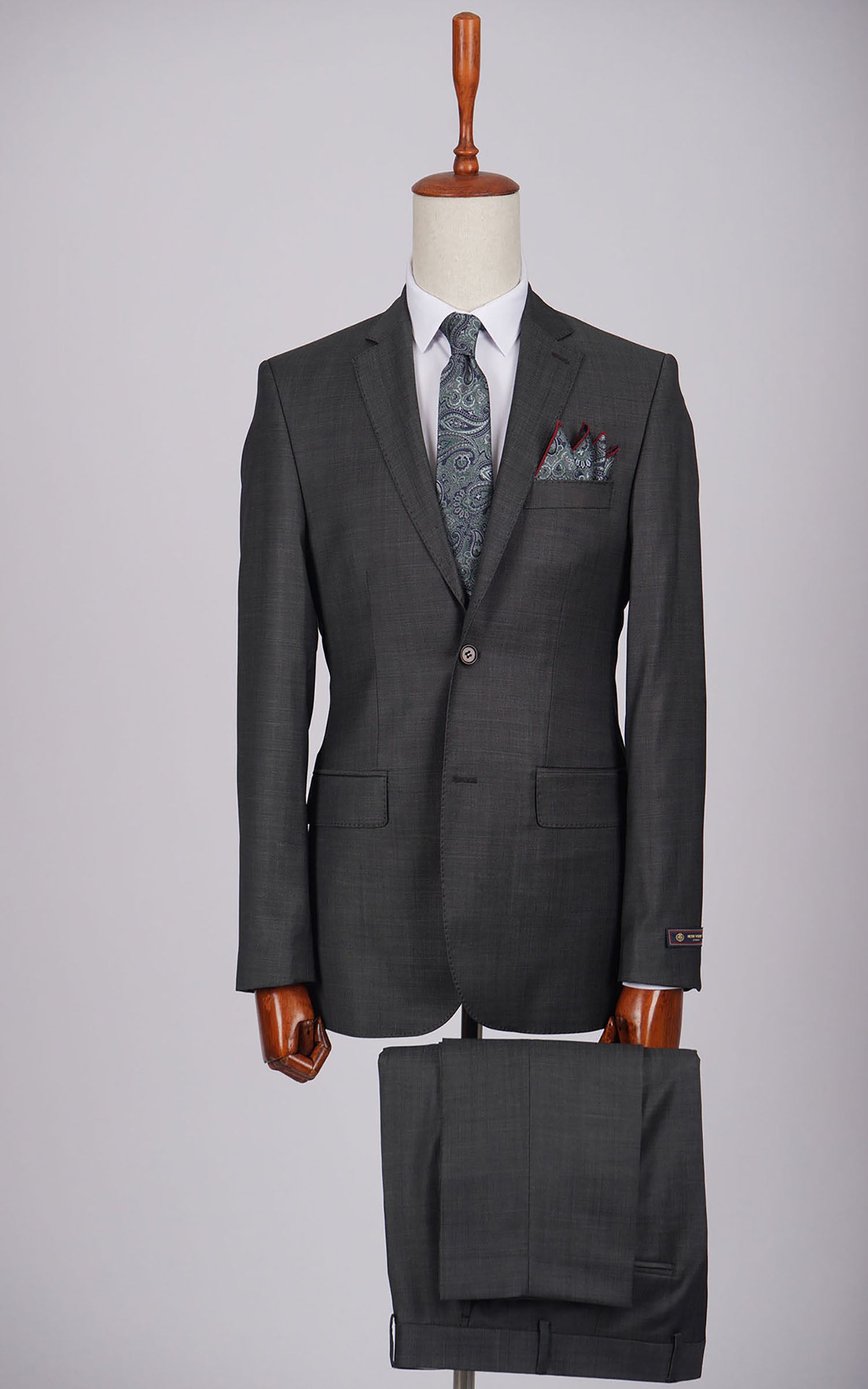 Grey Two Button Plain Wool Suit