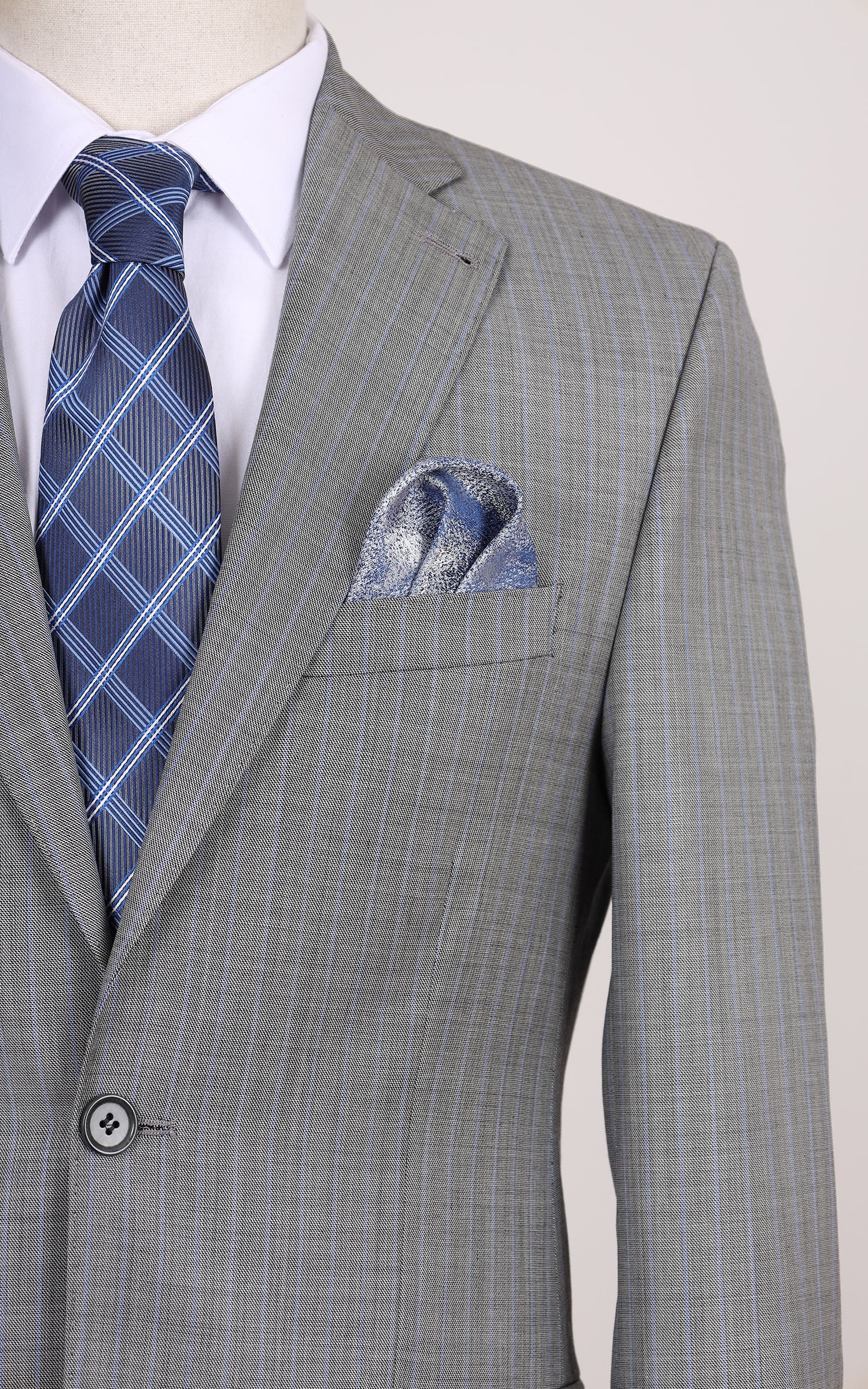 Grey Two Button Stripe Wool Suit